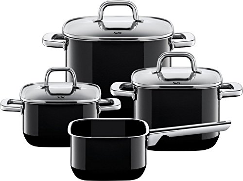 Silit Quadro Black Topfset 4-teilig quadratisch mit Glasdeckel, Silargan Funktionskeramik, stapelbar