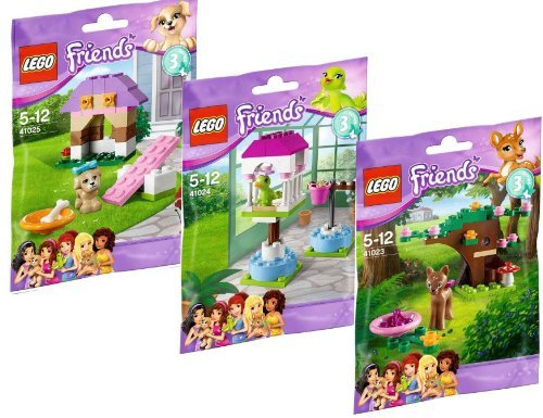 Lego Friends 3-er Set Serie 3 - 41023 Rehkitz im Wald + 41024 Papageienhäuschen + 41025 Welpen Hunde