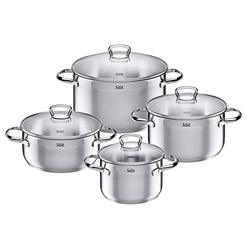 Silit Toskana Topfset, 5-teilig, mit Glasdeckel, Kochtopf, Stielkasserolle, Edelstahl teilmattiert,
